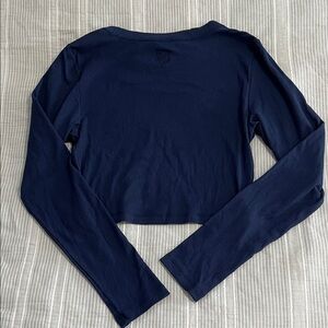 Chic navy crop top with long sleeves. Ideal for casual wear.