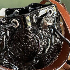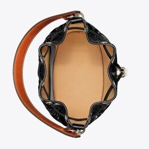 NWT! New! Tory Burch T Monogram Embroidered Patent Bucket Bag