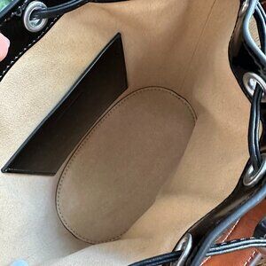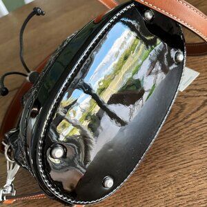 NWT! New! Tory Burch T Monogram Embroidered Patent Bucket Bag -BLACK Large