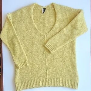 TopShop Yellow Cozy Chunky Knit V-Neck Sweater Relaxed Boho Indie Size Small