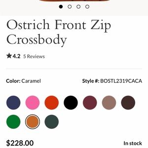 crossbody with ostrich texture. Features front zip pocket. Perfect for daily use.