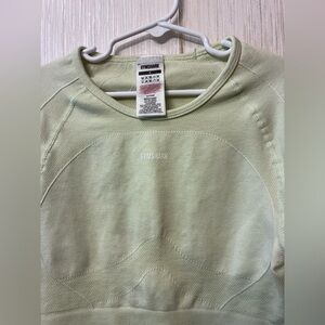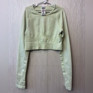 Gym Shark Shirt Women's S Pale Green Long Sleeve Cropped Thumb Holes Open Back