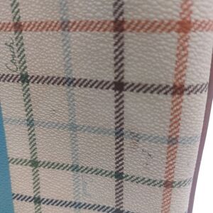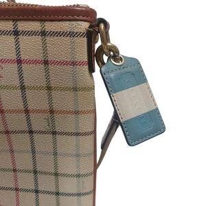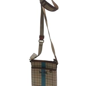 Coach Beige Checkered Crossbody with Blue Stripe
