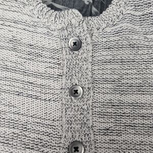 Design: Button-front, chunky knit, whimsical bird/swallow print trim.