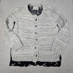 Anthropologie Field Flower Mixed Media Bird Print Knit Cardigan M