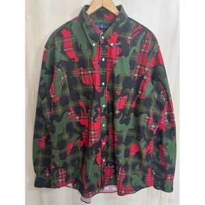 Ralph Lauren Stuart Plaid Military Camo Button Down Shirt Long Sleeve Mens 2XL