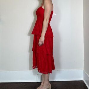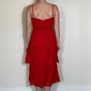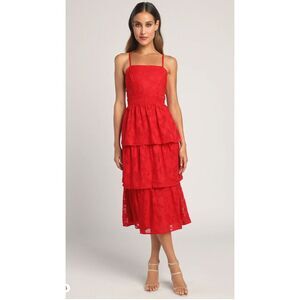 Lulus Grace and Beauty Red Burnout Floral Print Tiered Dress Size XS
