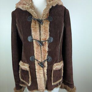 Vintage Y2K Penny Lane Suede Guess Hoodie Hooded Coat w/ Faux Fur Lining L