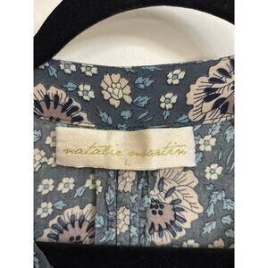 Natalie Martin Dress Womens Large Blue Floral Fiore Maxi V-Neck Rayon
