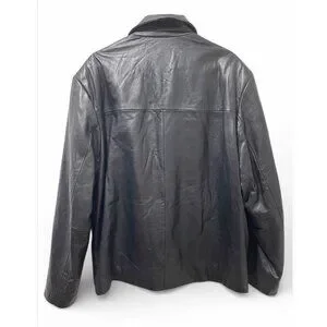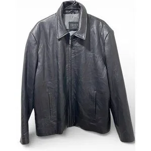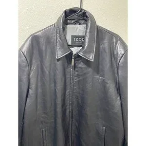 IZOD Men's Black Leather Jacket Full Zip Lined Size XL Classic Style