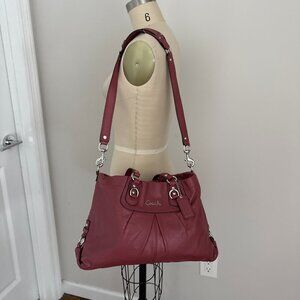 Coach Ashley Pleated Convertible Leather Satchel Mauve with Wallet