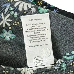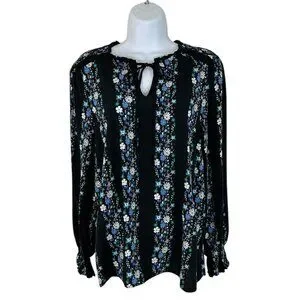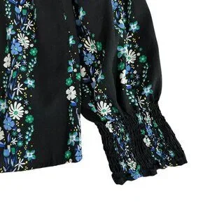 Talbots Women's Size M Dark Floral Striped Smocked Black Blouse