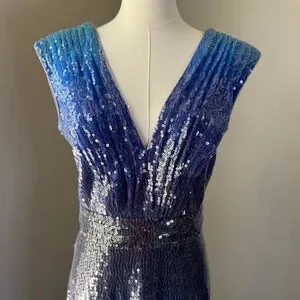 Chic Tadashi Shoji dress in royal blue. Ideal for elegant events. There is just a small portion of missing sequins but not noticeable. Please see all pictures
