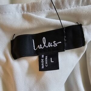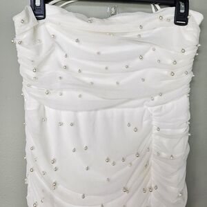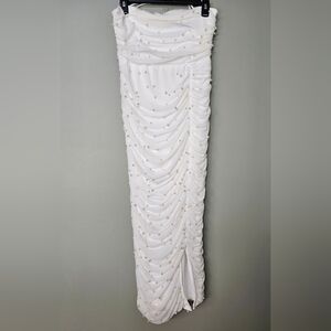 Lulus Toast to Romance White Ruched Pearl Bodycon Midi Dress, Size Large