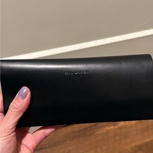 Stylish black sunglasses with a sleek case. Perfect for any occasion.