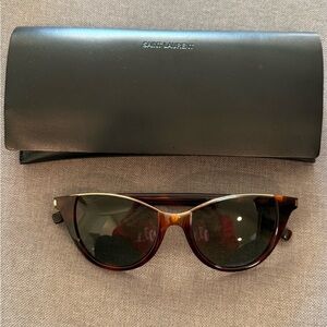Saint Laurent “Stella” tortoise cat eye sunglasses in Havana/green
