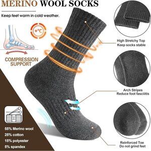 Women Merino Wool Dark Grey Sock 5 Pairs Warm Thick Crew Cozy Winter Boot Socks