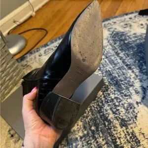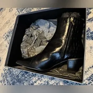 Stylish black croc-embossed ankle boots with a side zipper. Perfect for any occasion. Leather - worn a few times great condition comes with box and dust bag.