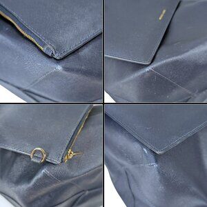 The tote is in good condition w/signs of wear & storage. The zip pouch is in excellent condition. The tote has faint marks on navy side & wear on corners. Light blue side has a lot of pen marks. No rips or tears