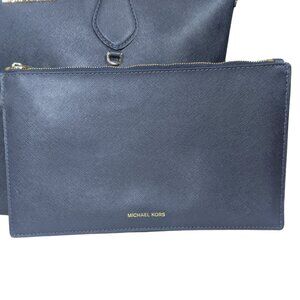 Michael Kors Navy Blue Eliza Large Leather Reversible Tote & Zip Pouch
