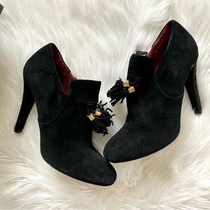NEW!!! GUCCI Black Booties Suede tassel fringe & Gold embellished zipper boots