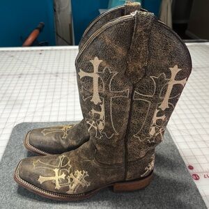 Cowgirl boots, no flaws, no defects. Excellent used condition. Calf width measures approximately 7 inches wide and boots measure approximately 13 inches tall. From a smoke free home.