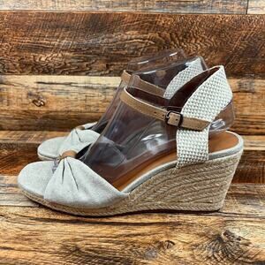 Lucky Brand Macrimay Espadrille Wedge Heels Women's 9 Tan Fabric Sandals Bow