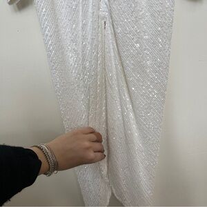 Brand new with tags. Note mark on interior tag and one row of sequins that has come off. Has been sewed to prevent more coming off. Also folds inward when worn so not very noticeable.