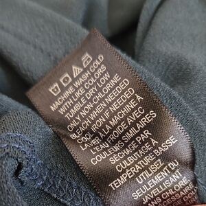 Features: Long sleeves with wide cuffs, pleated shoulder detail, fabric with stretch, and a secure faux-wrap hem.