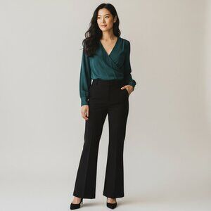 Adrianna Papell Green Faux Wrap Long Sleeve Blouse V-Neck Top Size S