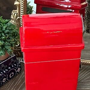 OH SO CUTE! Adorable Vintage Inspired vibrant red ceramic Love Letters Valentines Day Mailbox! This sweet mailbox is accented with a Cupid Bow & Arrow heart & old fashioned envelope Valentine! This is simply perfect for adding a touch of love to your holiday decor! This Beautiful Symbol of Love is a Perfect accent for your home this January & February Valentines holiday season! A Fantastic addition for your tabletop display, coffee bar, kitchen counter, book shelf or fireplace mantel. Add to a tiered tray or Lazy Susan for a unique centerpiece! Pairs well with Victorian Cottage, Bohemian, French Country Neutral, Romantic, Grand Millennial Shabby Chic & Vintage Flea Market decor styles!