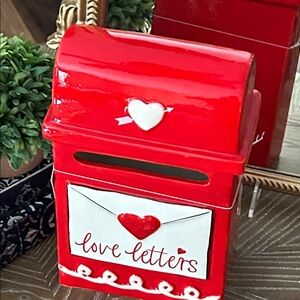 NEW! Vintage Inspired Ceramic Valentines Day Holiday Red Love Letters Mailbox