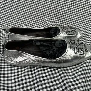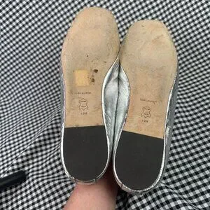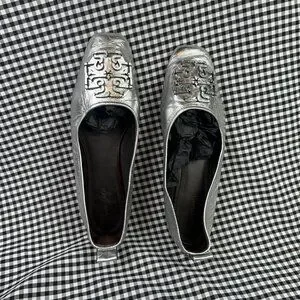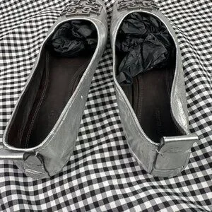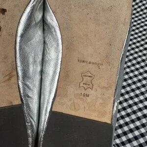 Tory Burch Ines Metallic Leather Ballet Flats Silver Square Toe Womens Size 10