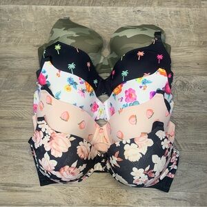 Super cute bundle 5 wear everywhere bras by VS Pink. Some floral Camo palm tree peach. All excellent condition no wear…