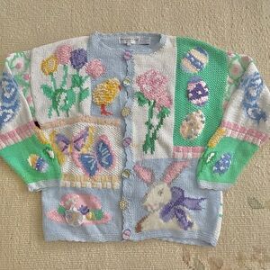 Vintage Cotton Womens Easter Knitted Cardigan Sweater Amazing