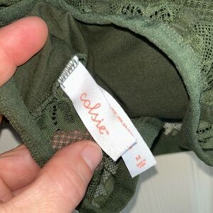 ^SOLD^ Corset Style Floral Lace Crop Tank Top Moss Green by Colsie Sz Medium