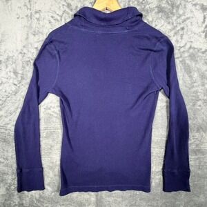 Showcase a classic yet distinct style with this Lauren Ralph Lauren shawl collar top. Crafted from soft, 100% ribbed cotton, this purple long-sleeve pullover features a unique toggle clasp closure at the neckline for a touch of sophistication. This top is a women's size Large and offers a comfortable, fitted silhouette. It's a versatile piece perfect for elevating a casual outfit with its distinctive design and quality construction.