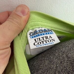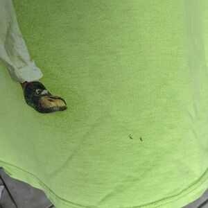 Stylish green graphic t-shirt featuring a unique design. Perfect for casual wear. 2 small holes near rods foot