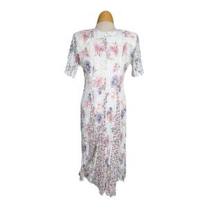 Vtg 1990s Nostalgia Ivory Pink Floral Lace Short Sleeve Romantic Maxi Dress S