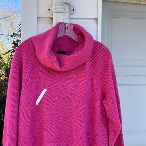 NWT Talbots Pretty Pink Multicolored Flecks Diamond Weave Cowl Neck Sweater. 1X Bust 46”, 2X Bust 50”, 3X Bust 54”, Length 29”. Originally $99. Enjoy!