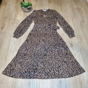 LK Bennett Daisy Wrap Dress Midi Leopard Neutral Preppy Fit Flare Classic Work 6