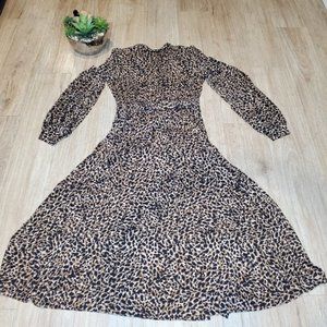LK Bennett Daisy Wrap Dress Midi Leopard Print Neutral Fit Flare Knit Preppy 6
