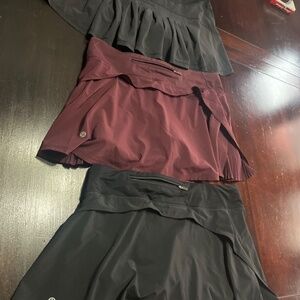 3 Lulu tennis skirts size 10. 2 black and 1 maroon. Gently warm and super cute colors.