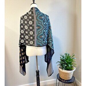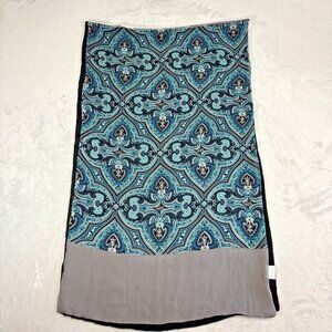 Charter Club Blue Gray Print 100% Silk/Viscose Scarf Delicate Overside Shawl
