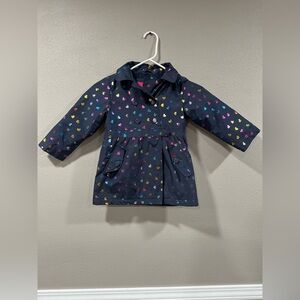 London Fog Navy Metallic Hearts Long Sleeve Hooded Jacket Raincoat