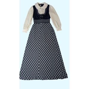 Patricia Fair Women's Vintage 70s Tic-Tac-Toe Novelty Print Maxi Dress Hippie