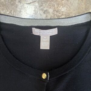 Banana Republic Merino Wool Black Classic Cardigan Sweater, Gold Buttons Size M