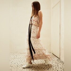 Joie Vernita Silk Maxi Dress - White Floral Pattern