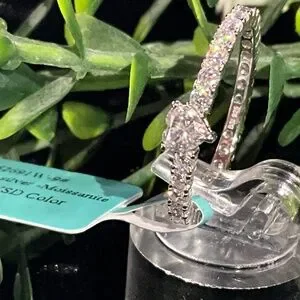 Adorable Eternity band with a Small Heart Stone. 2.20 ctw of VVS D Color Moissanite. 925 Sterling Silver (stamped). Sz 9