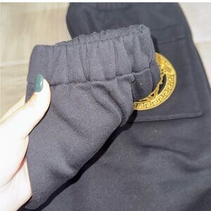 Elevate your style with these Versace black jogger pants. Featuring a comfortable fit and iconic design, these pants are perfect for any casual occasion. 100% authentic! Brand new! These would fit a Medium they’re IT 40. Has lots a stretch
